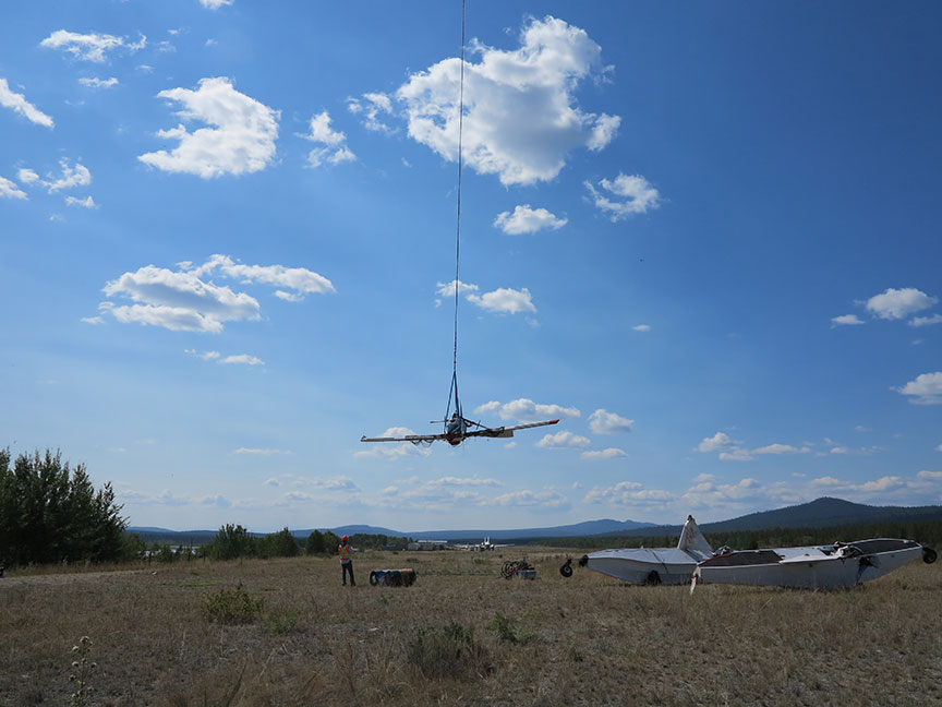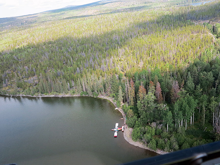 Un Air Tractor AT-802A sur flotteurs amphibies (immatriculé C-GXNX, numéro de série AT-802A-0530), exploité sous l’indicatif Tanker 685, effectuait de jour des opérations de gestion de feux de végétation près de Chantslar Lake (Colombie-Britannique). Trois aéronefs semblables travaillaient en équipe avec le Tanker 685, qui était deuxième en ligne pour effectuer des posés-décollés et écoper l’eau de Chantslar Lake. À l’envol, il s’est produit une perte de maîtrise, et l’aile droite de l’aéronef a percuté le plan d’eau. L’aéronef a fait un tête-à-queue sur l’eau, et les flotteurs et leur structure de soutien se sont séparés du fuselage. L’aéronef est demeuré à la verticale et a coulé lentement. Légèrement blessé, le pilote a évacué le poste de pilotage avant de gonfler le vêtement de flottaison individuel qu’il portait. Le troisième aéronef dans la formation a largué le contenu de son système d’écope alors qu’il poursuivait son décollage, demeurant dans le circuit. Le quatrième aéronef a largué le contenu de son système d’écope, a interrompu son décollage, puis a circulé sur l’eau pour récupérer le pilote en cause. La force d’impact a activé la radiobalise de repérage d’urgence de 406 mégahertz à bord. Toutefois, ce n’est que 6 jours plus tard, lors de la récupération de l’épave, que le système de recherche et de sauvetage par satellite a détecté son signal.