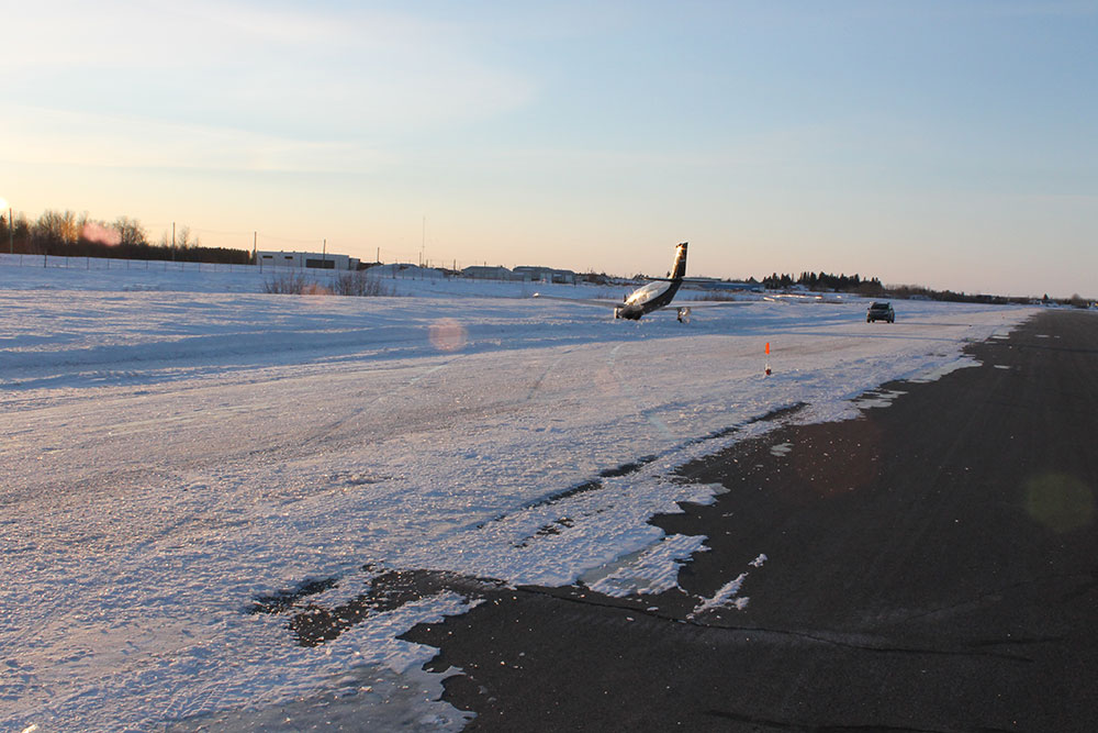 Le , l'aéronef Piper PA-46-350P Malibu Mirage sous immatriculation privée (immatriculé C-GSSA et portant le numéro de série 4636518) décolle de l'aéroport international de Montréal à Mirabel (Québec) à 8 h 48, heure normale de l'Est, à destination d'Alma (Québec), avec 1 pilote et 1 passager à son bord. Le vol se déroule sans incident et l'aéronef se pose à 10 h 2 sur la piste 31. Au toucher de la roue avant sur la piste, il y a perte de maîtrise en direction. L'aéronef bifurque à gauche et quitte la surface de la piste 400 pieds plus loin. L'aéronef s'immobilise à environ 100 pieds du bord de la piste, dans un banc de neige compactée, à environ 2200 pieds du seuil de la piste 31. Il n'y a pas de blessés. L'aéronef est lourdement endommagé. Il n'y a aucun incendie. Les forces d'impact n'ont pas suffi à activer la radiobalise de repérage d'urgence de 406 MHz.