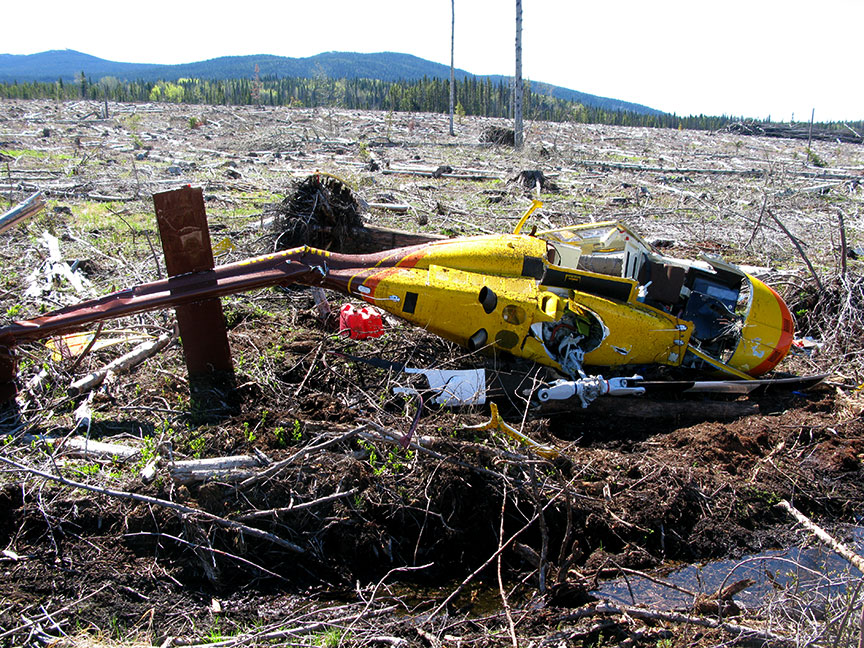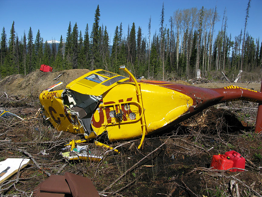 Le à 7 h 26, heure avancée du Pacifique, un Bell 206B Jet Ranger-III (immatriculé C-GOPK, numéro de série 3247) exploité par Highland Helicopters Ltd. effectuait un balayage infrarouge d'une aire de coupe à environ 112 milles marins au nord ouest de Prince George (Colombie-Britannique), lorsque l'hélicoptère a amorcé une rotation intempestive vers la droite plusieurs fois et a chuté au sol. L'hélicoptère a été détruit par l'impact, et les 3 occupants à bord ont été grièvement blessés. Aucun incendie ne s'est déclaré après l'impact. La radiobalise de repérage d'urgence de 406 MHz s'est déclenchée. Les 3 occupants blessés ont été transportés à l'hôpital par un autre aéronef appartenant à Highland Helicopters Ltd. qui travaillait dans ce secteur.