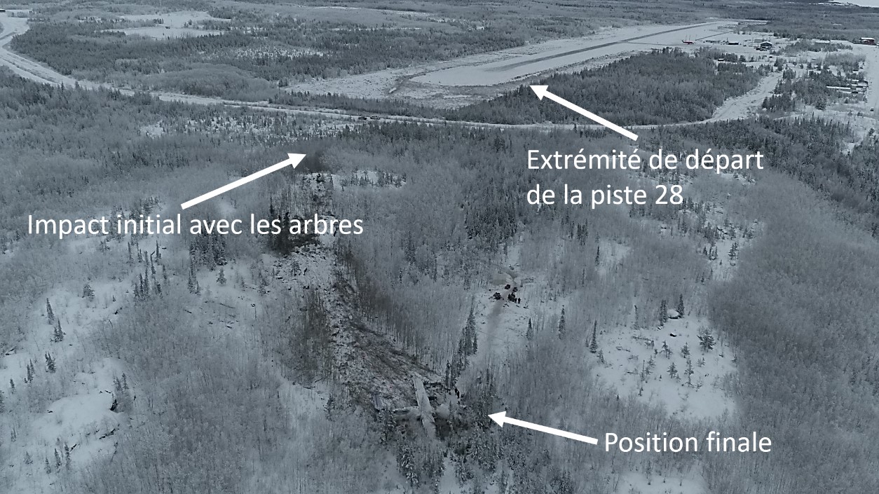 Vue aérienne du lieu de l’événement (Source : Gendarmerie royale du Canada, avec annotations du BST)