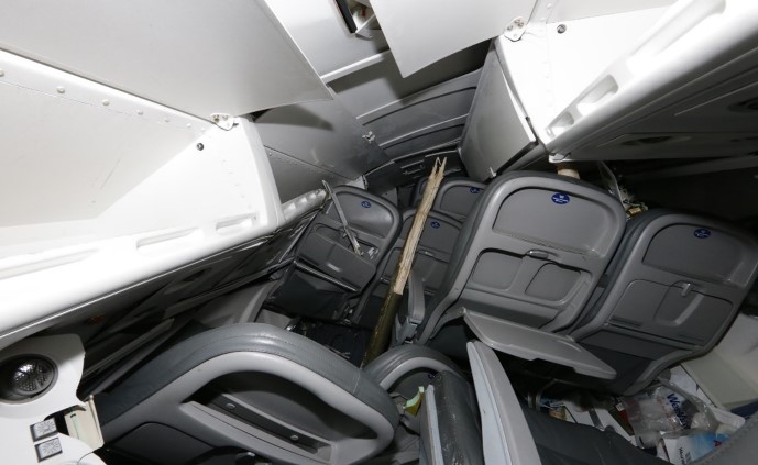 Photo des sièges déplacés dans la cabine (Source : BST)