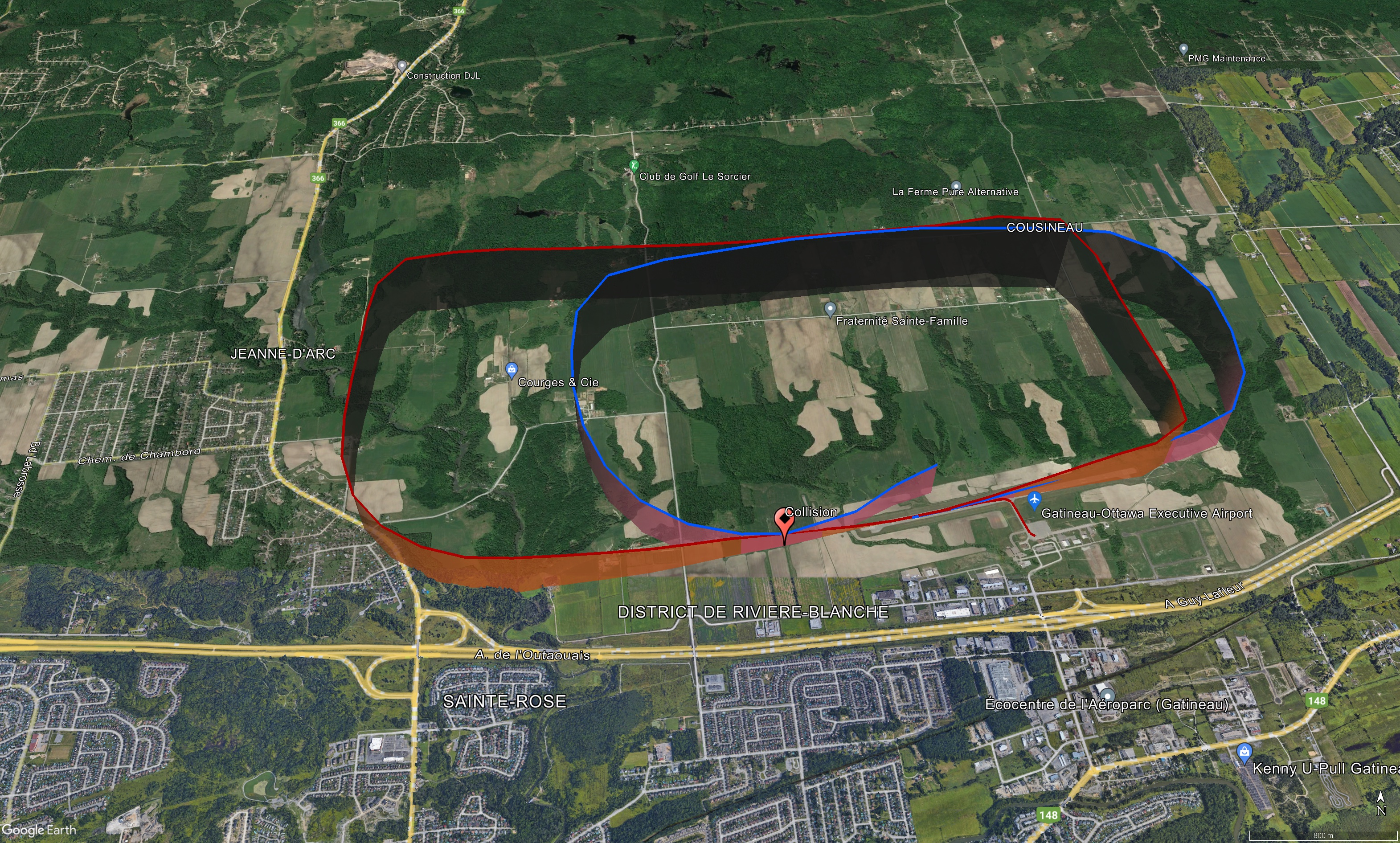 Rapport d’enquête : Collision en vol pendant un exercice d’entraînement à l’aéroport d’Ottawa/Gatineau (Québec)