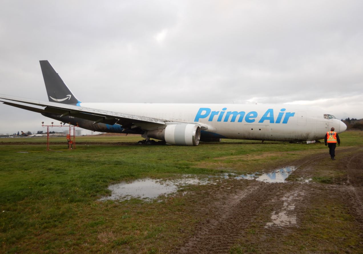 L’aéronef a dépassé l’extrémité de la piste 08L à environ 120 nœuds, heurtant plusieurs feux d’approche. Il s’est ensuite enfoncé dans le sol boueux et s’est immobilisé à environ 1250 pieds au-delà de la surface revêtue. Après avoir lancé un appel de détresse MAYDAY et rempli la liste de vérification pour l’arrêt moteur, l’équipage et la personne assise sur un strapontin ont quitté l’aéronef avec l’aide d’employés de sauvetage aérien et de lutte contre les incendies.