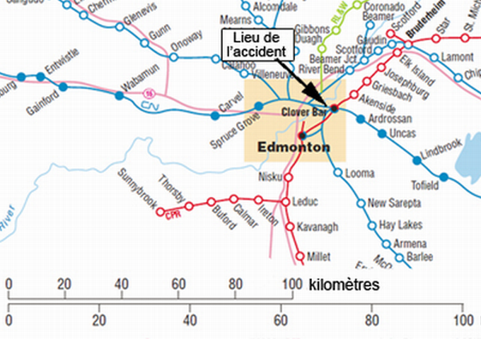 Le Bureau de la sécurité des transports du Canada (BST) dépêche une équipe sur le lieu d'un accident ferroviaire, survenu près de Edmonton (Alberta). Le BST va recueillir des informations et évaluer l'événement.