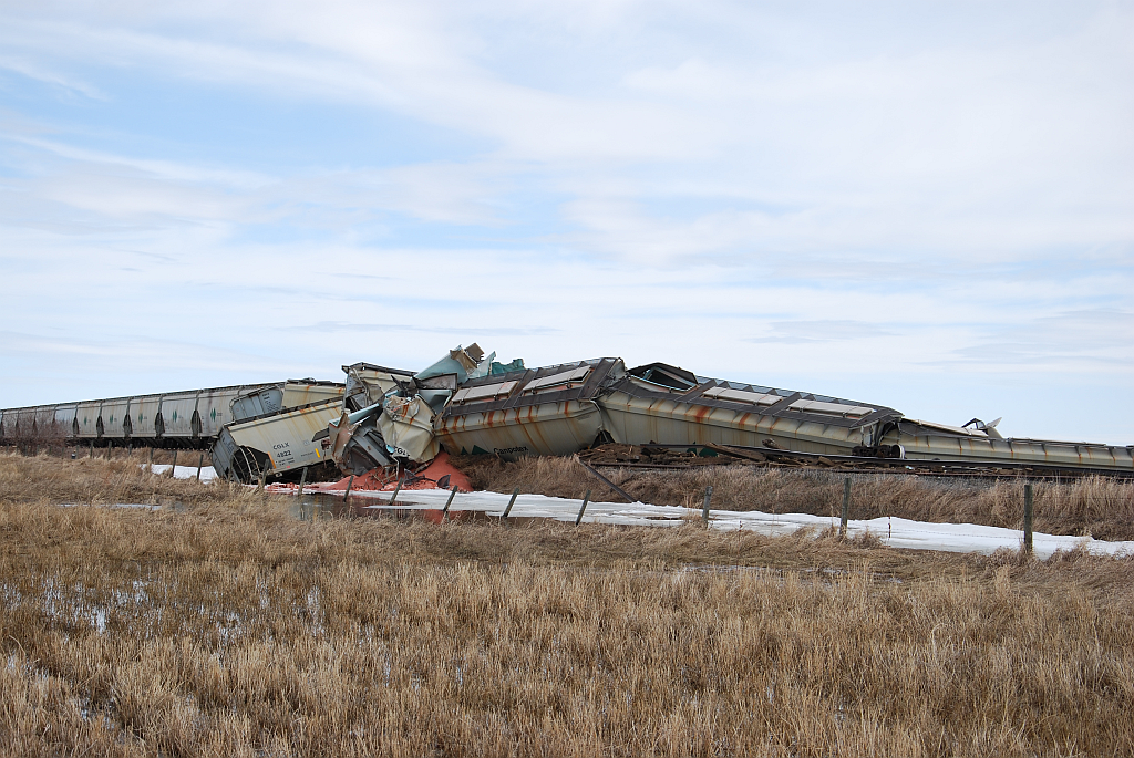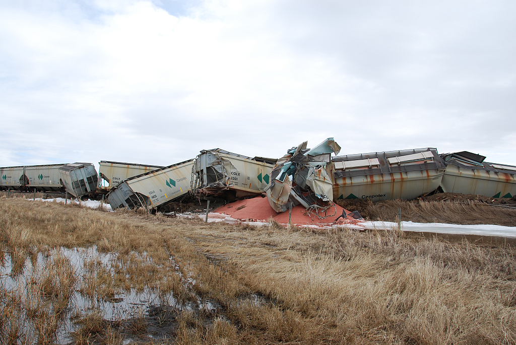 Le 28 avril 2013, alors qu'il circulait vers l'ouest sur la subdivision Hardisty, un train de marchandises du CP a fait l'objet d'un freinage d'urgence intempestif au point milliaire 80.5. Au cours de l'inspection, les membres de l'équipe ont constaté que 17 wagons chargés de potasses avaient déraillé. Une partie de la potasse a été déversée. Aucune blessure n'a été signalée. James Carmichael, enquêteur, Opérations de rail au BST, a été déployé sur les lieux.