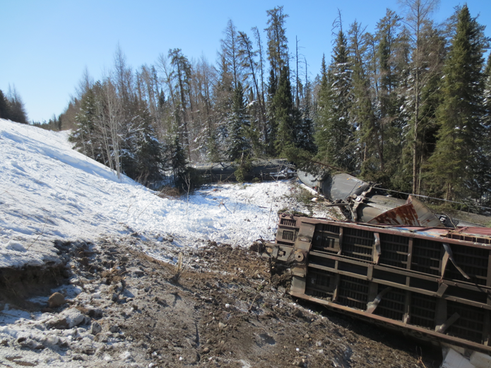 Gatineau (Québec), le 3 avril 2013 — Le Bureau de la sécurité des transports du Canada (BST) dépêche une équipe d'enquêteurs sur les lieux d'un déraillement survenu près de White River (Ontario). Vers 7 h 50 HE, 22 wagons d'un train de marchandises du Canadien Pacifique ont déraillé. Un des wagons a une fuite de pétrole brut. Le BST va recueillir des informations et évaluer l'événement.