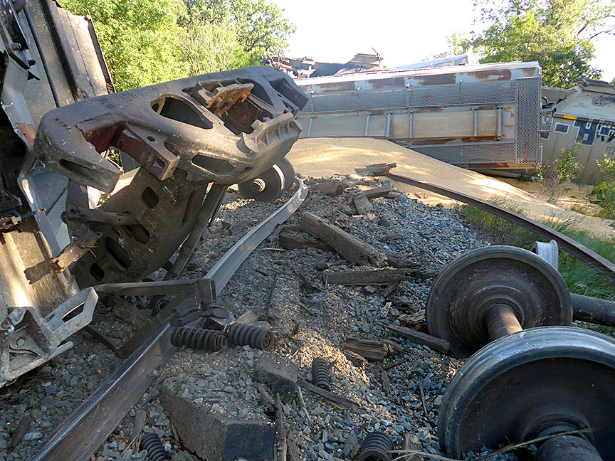Le , à 12 h 50, heure avancée du Centre, le train-bloc de marchandises 369-377 du Chemin de fer Canadien Pacifique se dirigeait vers le nord à 40 mi/h sur la subdivision d’Emerson lorsqu’un freinage d’urgence provenant de la conduite générale s’est produit. Une inspection subséquente a révélé que 22 wagons-trémies couverts chargés de maïs avaient déraillé à la sortie d’un pont (point milliaire 53,60) près de la ville de Dominion City (Manitoba). Il n’y a eu aucun blessé.