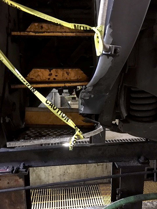 Le , vers 0 h 10, heure avancée de l’Est, le train X 14921-01 de la Compagnie des chemins de fer nationaux du Canada (CN) circulait vers l’ouest à environ 48 mi/h sur la voie sud de la subdivision de Kingston du CN lorsqu’il a heurté une machine d’entretien de la voie qui travaillait sur la voie nord au point milliaire 84,27, près de Crysler (Ontario). Les organes de travail (bourroirs) de la machine d’entretien de la voie étaient déployés à l’horizontale et obstruaient la voie sud. Il n’y a pas eu de blessés. Les bourroirs de la machine d’entretien de la voie ont été endommagés. Des dispositifs de sécurité sur les 2 locomotives et sur 3 wagons du train ont été endommagés. Sept autres wagons ont été légèrement endommagés.