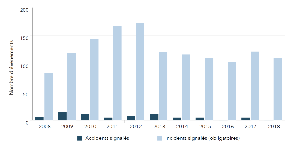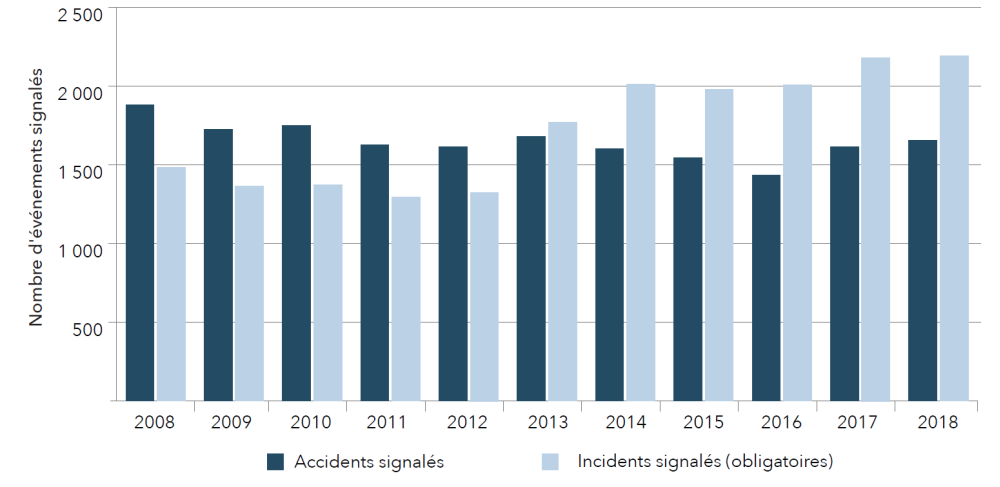 Figure 1. Événements de transport signalés au BST, de 2008 à 2018