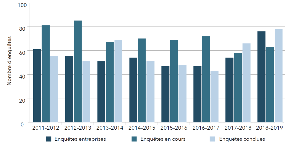 Figure 2. Enquêtes prises en charge par le BST, de 2011-2012 à 2018-2019