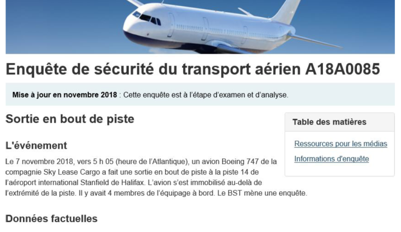 Chaque année, le personnel du Bureau de la sécurité des transports du Canada (BST) se rend partout au pays à la suite d'accidents et d'incidents qui se produisent dans les secteurs aérien, ferroviaire, maritime et pipelinier.