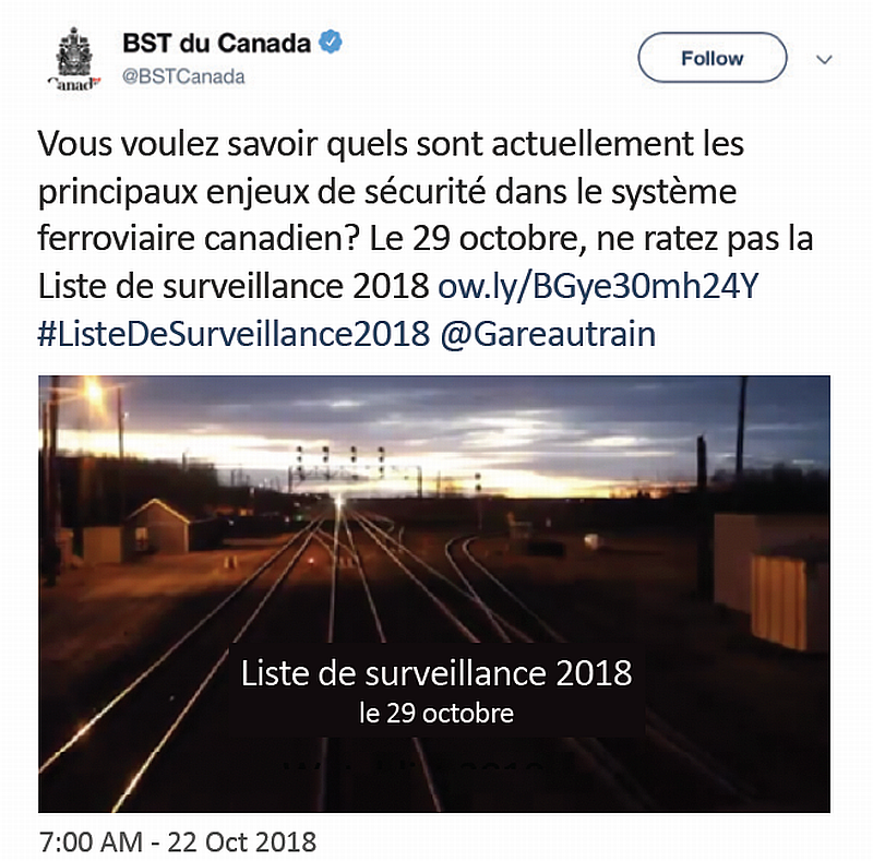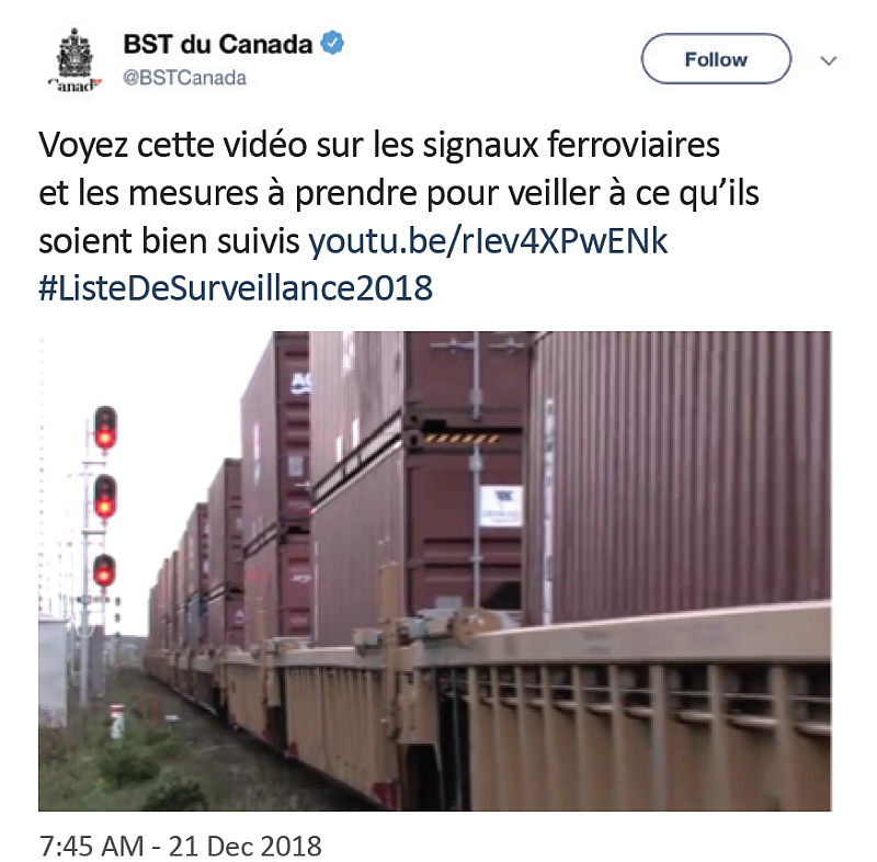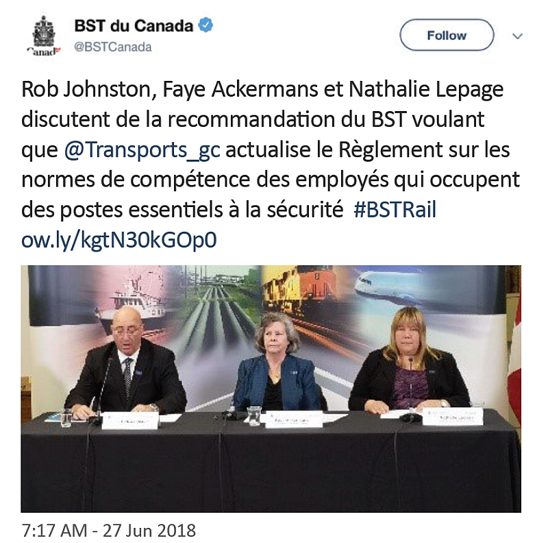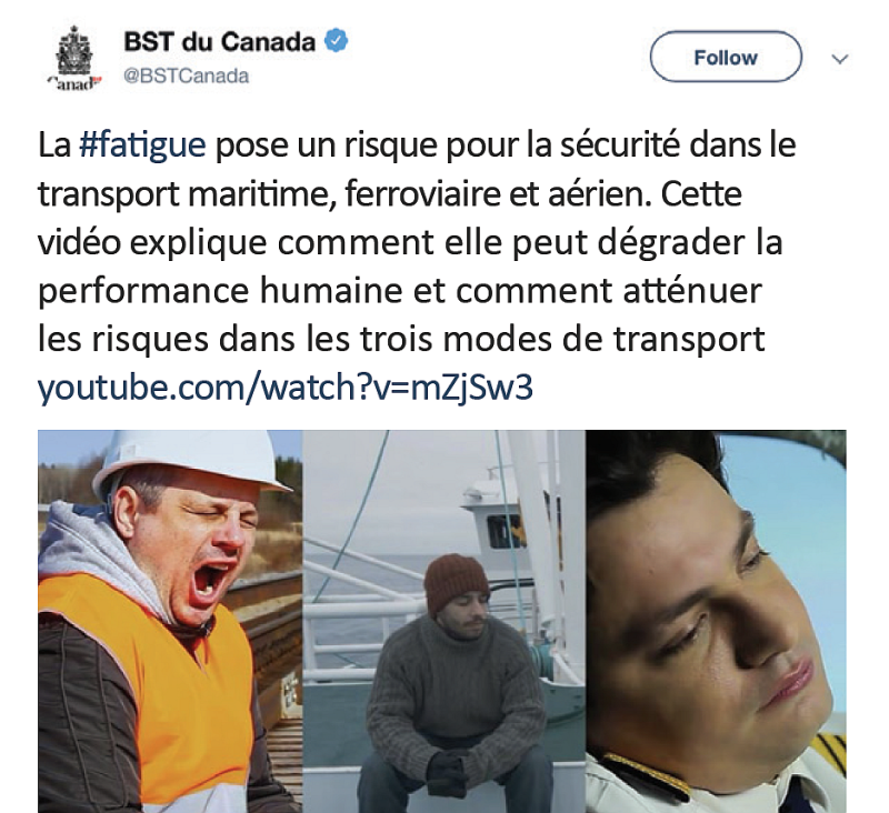 En octobre, nous avons publié notre Liste de surveillance 2018 pour attirer l'attention sur sept enjeux qui nécessitent une intervention du gouvernement et de l'industrie. Parmi ces enjeux figure la fatigue des équipages, un facteur qui continue de contribuer aux événements et qui exige donc un profond changement de culture dans le système de transport sous compétence fédérale.