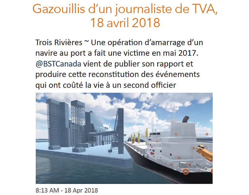Accident d'amarrage, vraquier Nord Quebec, Trois-Rivières (Québec), 22 mai 2017