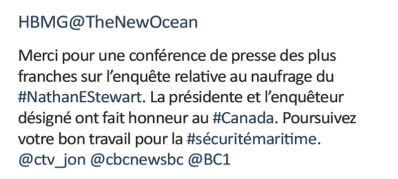 FedNav a mené une enquête interne sur cet événement et publié son rapport, le 25 décembre 2017, pour faire part des leçons apprises aux officiers de la flotte.