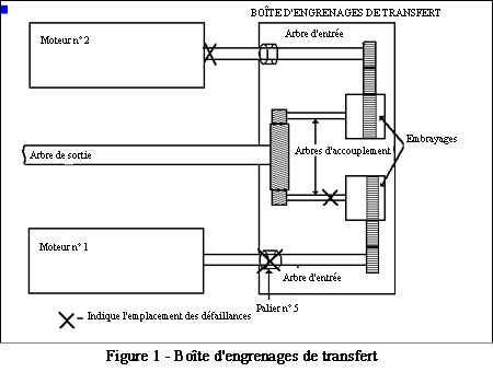 L'arbre d'accouplement entre l'embrayage du moteur numéro 1 et les engrenages hélicoïdaux de sortie finale était cisaillé. Les surfaces de fracture de cet arbre se sont modifiées au moment où les deux moitiés ont frotté l'une contre l'autre après la rupture; toutefois, les caractéristiques générales de la rupture correspondaient à celles d'une rupture par surcharge en torsion dans le sens de la charge normale d'entraînement.