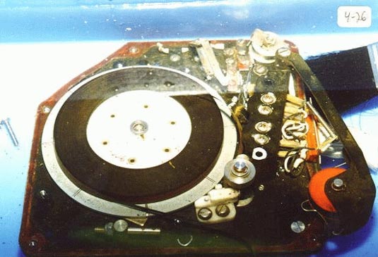 L'enregistreur a été rincé à l'eau claire, puis démonté. On a gardé le module antichoc de la mémoire submergé le plus longtemps possible pour réduire les effets de l'oxydation. Le module antichoc interne a été sorti du boîtier extérieur et du boîtier intérieur; il était en bon état et il ne présentait pratiquement aucun signe de dommages causés par l'impact.