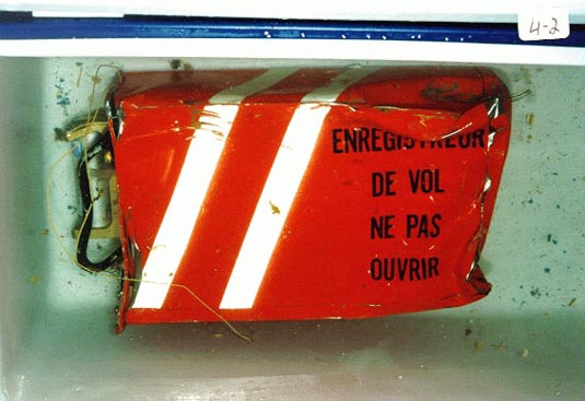 L'enregistreur de données de vol (FDR) de l'avion a été repêché par des plongeurs le 6 septembre 1998 dans environ 50 m d'eau. Il a été apporté sous escorte au Laboratoire technique du Bureau de la sécurité des transports (BST) à Ottawa pour y être analysé. On l'a placé dans un contenant rempli d'eau distillée pour réduire le risque d'oxydation à la suite de son immersion dans l'eau salée.