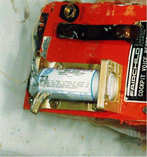 La radiobalise sous-marine de détresse (ULB) de l'enregistreur était intacte et toujours fixée au module antichoc qui contient la mémoire. Les supports de fixation de la radiobalise étaient lourdement endommagés, mais ils la retenaient encore à sa place.