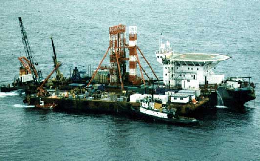 Un officier de la GCC, qui possédait de l'expérience dans les opérations de repêchage, a agi à titre de gestionnaire de projet. Ce projet mobilisant une main-d'œuvre importante a nécessité les efforts soutenus de neuf équipes de 10 personnes de la GRC, du MDN et du BST pour mener à bien les opérations qui se sont poursuivies 24 heures par jour, 7 jours par semaine. Ces équipes ont été logées et nourries dans un camp de base temporaire à terre d'où elles pouvaient être transférées sur la barge et en revenir avant et après chaque quart de travail. Ces installations de soutien ont été érigées près d'un centre communautaire de Blandford (Nouvelle-Écosse) par le personnel du MDN en quelques semaines seulement. Ces opérations ont reçu l'appui de nombreuses entreprises et autres organismes, dont le service local des incendies.