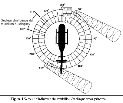 Ce phénomène peut se produire dans certaines conditions de vent lors des vols des hélicoptères monorotor à des vitesses de 30 noeuds ou moins. On l'a défini comme étant un lacet intempestif sur la droite qui ne s'élimine pas de lui-même et qui, s'il n'est pas corrigé, peut causer une perte de maîtrise de l'hélicoptère. Grâce à des essais en vol poussés et à des essais en soufflerie, on a cerné quatre cas de figure d'hélicoptères volant à basse vitesse comme étant des facteurs contributifs à la perte d'autorité du rotor de queue. Dans un cas de figure, connu sous le nom de « tourbillon du disque rotor principal », on constate une perte d'autorité directionnelle due au fait que le rotor de queue qui entre dans le tourbillon généré par le rotor principal subit une diminution d'angle d'attaque des pales et donc une diminution de poussée. Le secteur du vent relatif qui influence cette caractéristique se situe entre 285 et 315 degrés. Ce phénomène peut aboutir à une vrille à plat rapide et à un brusque contact avec le sol. La technique de rétablissement nécessiterait normalement de réduire le pas collectif; toutefois, dans le cas qui nous occupe, il n'y avait pas suffisamment de hauteur pour éviter un contact avec les obstacles.