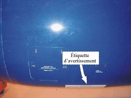 - La position des étiquettes d'avertissement des carters de soufflante est inadéquate en ce sens que les étiquettes ne sont pas facilement visibles quand les carters de soufflante sont fermés et déverrouillés.