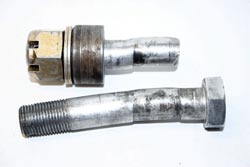 Les observations faites sur le boulon indiquent que celui-ci s'est rompu sous des forces combinées de cisaillement et de tension causées par l'étirement lorsque celui-ci a été déformé.