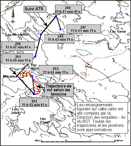 | no 253 | 11 h 44 min 11 s | La vitesse-sol moyenne entre les points 252 et 253 a diminué jusqu'à environ 62 noeuds. Il se peut que la vitesse de l'hélicoptère ait continué à diminuer au-delà du point 253. |