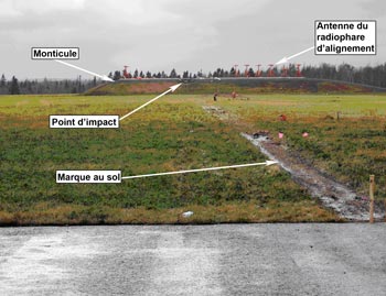 L'herbe a été arrachée dans la partie située au-delà de la piste, là où le fuselage arrière a raclé le sol; de plus, un certain nombre de feux d'approche de la piste 06 ont été détruits. La structure de l'antenne du radiophare d'alignement de piste de l'ILS a été lourdement endommagée lorsque l'avion a percuté le monticule. Des lignes électriques et téléphoniques à proximité du lieu principal de l'accident ont été sectionnées juste avant l'impact final. La région boisée environnante a été lourdement endommagée par l'incendie qui s'est déclaré après l'accident. Du carburant non brûlé a contaminé le sol dans la région immédiate du lieu de l'accident, ce qui a nécessité d'importantes opérations de dépollution.