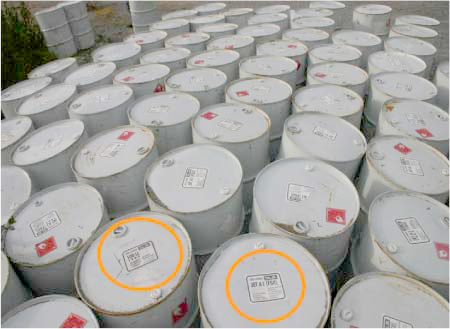 Aucune couleur distinctive n'est nécessaire sur les étiquettes d'identification. Les produits stockés dans les contenants ne sont pas visibles pour l'utilisateur et présentent une couleur et une odeur distinctes. L'essence aviation est bleue et le carburéacteur est jaune. Les travailleurs qui ont chargé le produit chez le grossiste et ceux qui ont livré le produit à la SOPFEU ont pris par erreur des fûts d'essence aviation au lieu de prendre des fûts de Jet A1. Au cours du ravitaillement, les pilotes d'hélicoptère ont pris par erreur des fûts d'essence aviation pour des fûts de Jet A1.