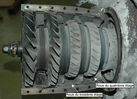 - La perte de puissance du moteur a été provoquée par la rupture de la roue du troisième étage du compresseur.