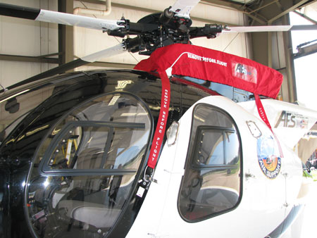 Prism Helicopters a mis en œuvre des procédures nécessitant l'installation de dispositifs d'arrimage des pales lorsque la housse protectrice est installée. De plus, on a modifié les housses en leur ajoutant du ruban/des courroies suspendus qui doivent être fixés aux portes avant.