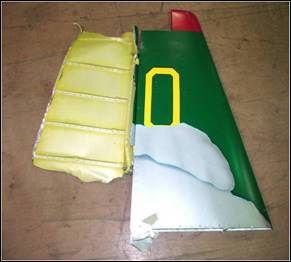 La gouverne de direction était toujours fixée à la dérive par les charnières supérieure et centrale et était sectionnée en deux tout juste au-dessous de la charnière centrale. Il n'y avait plus de contrepoids. La dérive n'était pas endommagée, mais la gouverne de direction était tordue et déformée.
