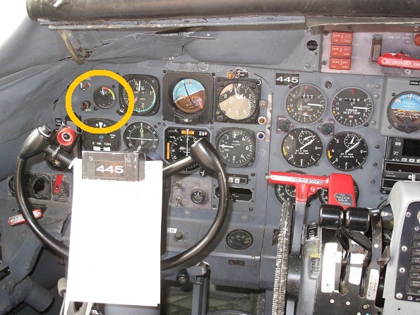 Par contre, l'emplacement de l'indicateur fait en sorte qu'il est difficile de voir toute l'aiguille et les arcs de couleur du siège du pilote de droite, ce qui peut réduire l'efficacité de cet outil.