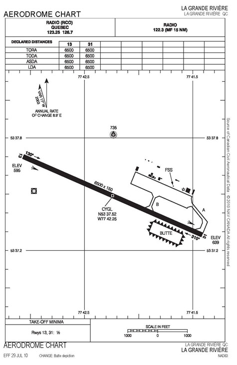 - élévation de l'aéroport de La Grande Rivière de 640 asl.