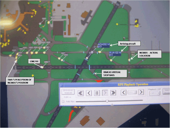 - L'affichage ASDE n'indiquait pas les étiquettes d'identification des aéronefs au départ, ce qui a continué à faire croire par erreur au contrôleur que NCB801 se trouvait au seuil de la piste plutôt que sur la voie de circulation U.