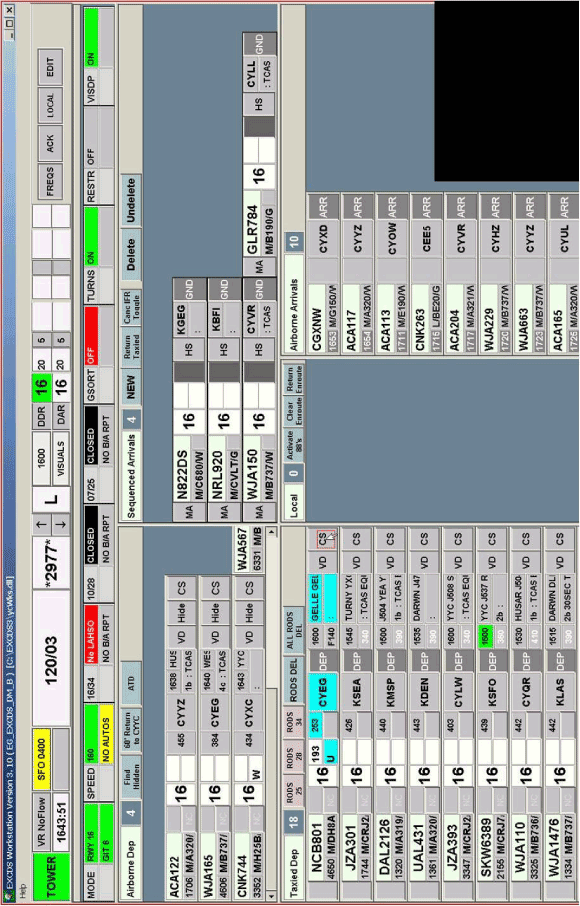 Étant donné les conditions de faible visibilité, le travail du contrôleur consistait à surveiller l'affichage ASDE pour déterminer la position des aéronefs plutôt que de regarder à l'extérieur. Étant donné que les cibles des aéronefs au départ affichées sur l'écran de l'ASDE n'avaient pas d'information d'identification, le contrôleur aurait dû normalement utiliser l'affichage EXCDS pour déterminer l'ordre des départs et la position des aéronefs sur la piste. Un radar secondaire de surveillance était utilisé pour assurer les services ATS aux aéronefs en vol à l'arrivée et au départ qui évoluaient à l'intérieur de la zone de contrôle. Le poste était également équipé d'un quatrième affichage pour les conditions météorologiques.