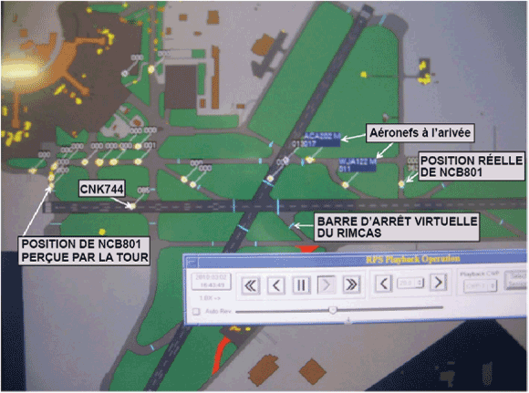 - La fonction RIMCAS était désactivée, ce qui a privé le contrôleur d'un avertissement du fait que NCB801 franchissait la ligne d'attente alors que CNK744 était en train de décoller.