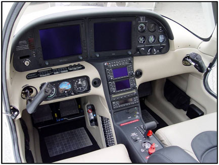 Le C-FGLA était pourvu d'un système d'instrumentation, Avidyne Entegra, constitué d'affichages à cristaux liquides plats comprenant tous les instruments de vol et systèmes de navigation. L'écran principal de vol (PFD) se trouvait devant la position du pilote de gauche; à droite de cet écran, il y avait un écran multifonction (MFD). Le PFD offrait les éléments suivants : ruban de vitesse et ruban altimétrique, vitesse verticale, indicateur de situation horizontale, indicateur d'assiette et compas. Les paramètres du moteur étaient affichés par voie numérique sur le MFD, de même que les renseignements de navigation.