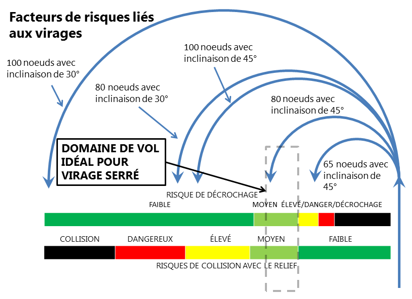 - Si les pilotes n’apprennent pas à reconnaître les décrochages à un angle d’inclinaison prononcé et à en sortir, les risques de collision avec le relief sont accrus lorsque leur appareil décroche dans une telle situation.