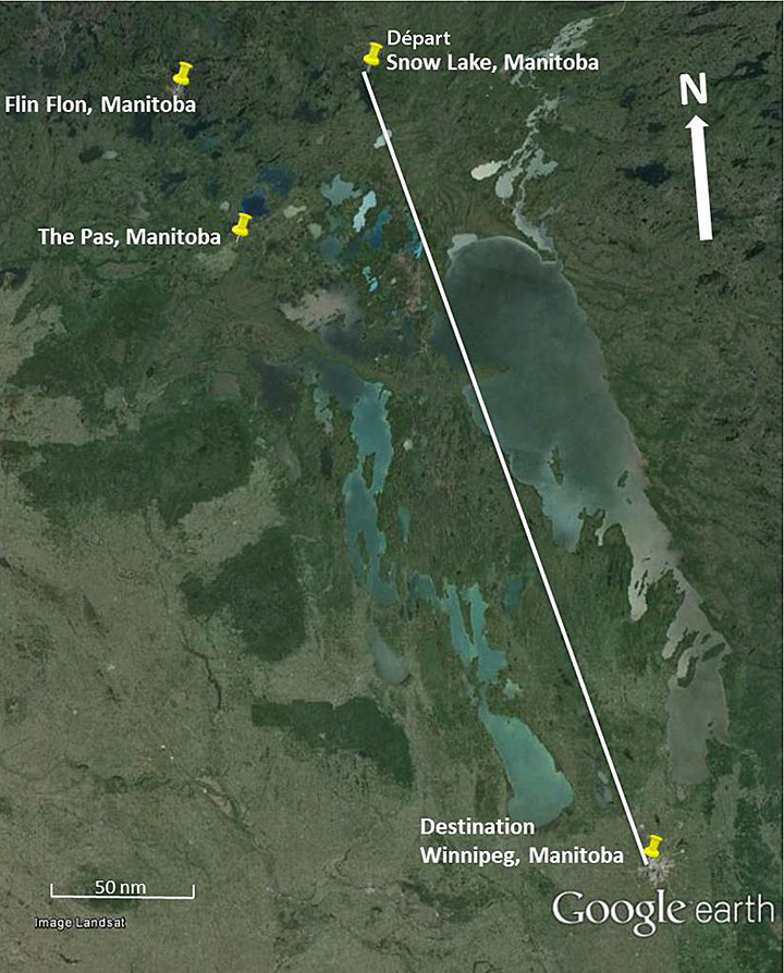 Gogal Air Services Ltd. (Gogal) était engagée par une société minière locale pour le transport d'employés entre Snow Lake et Winnipeg (Manitoba) (figure 1), afin de faciliter les changements d'équipe, lesquels se faisaient habituellement selon un cycle de 10 jours. La société minière a demandé à Gogal de transporter 13 employés de Snow Lake à Winnipeg le matin du 18 novembre 2012, ce vol représentant une distance de 310 milles marins (nm).