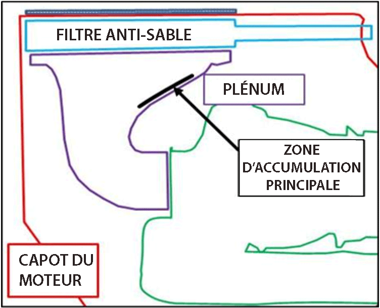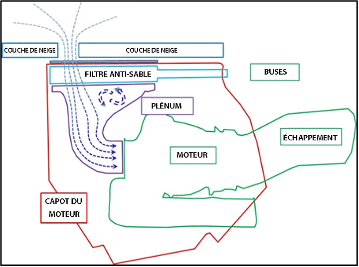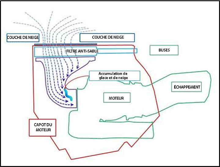 - Plus particulièrement, il ne doit y avoir aucune accumulation d'eau dans le circuit d'entrée d'air du moteur (grille ou filtre), laquelle pourrait geler de nouveau ultérieurement.