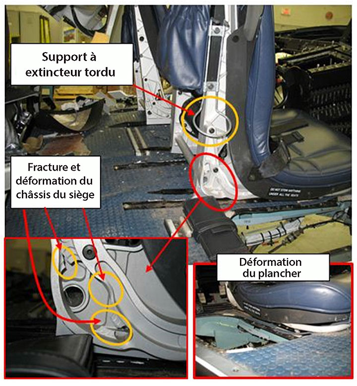 Le siège du pilote, qui était de type atténuateur d'impact, s'était affaissé et avait déformé le plancher.