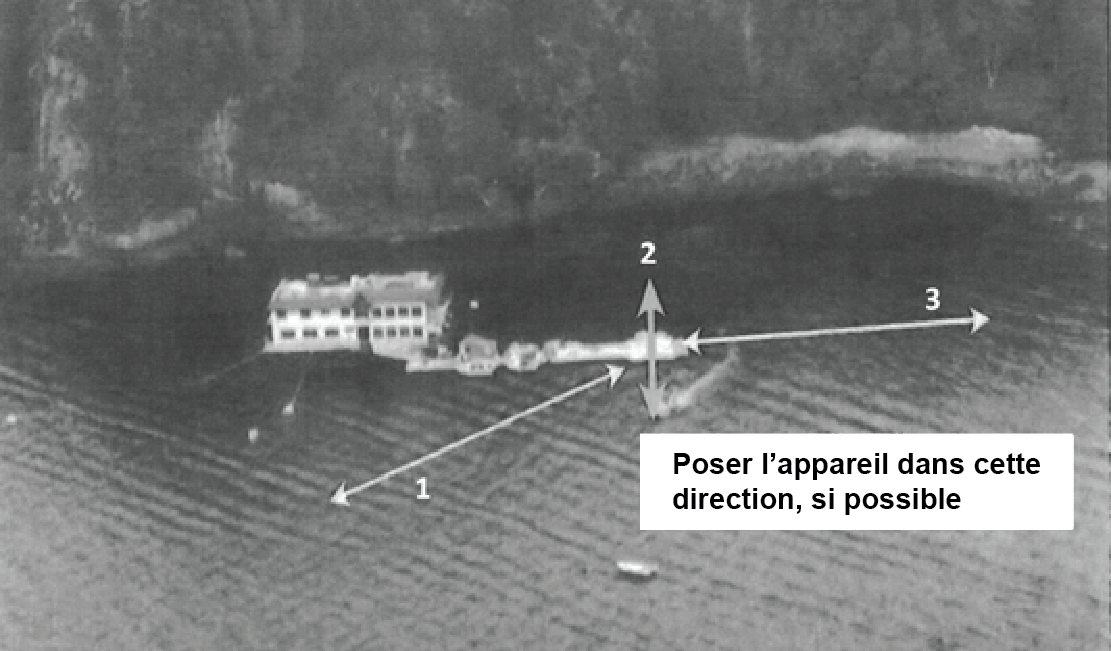 - Orientation de l'appareil sur l'hélisurface (à 90° par rapport à la passerelle)
