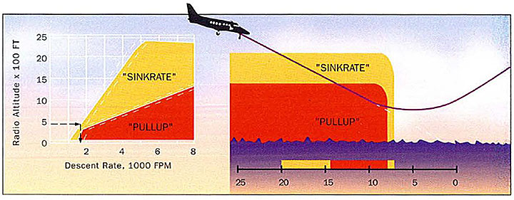 Le dispositif avertisseur de proximité du sol (GPWS) a généré un avertissement SINK RATE (TAUX DE DESCENTE) à 23 h 6 min 11 s UTC lorsque le taux de descente a dépassé 1500 pieds par minute (pi/min), suivi d’un avertissement PULL UP (REMONTEZ) à 23 h 6 min 13 s UTC lorsque le taux de descente a dépassé 1800 pi/min. L’avertissement PULL UP-PULL UP a retenti 3 fois durant une période de 4 secondes. Le premier a retenti lorsque l’aéronef se trouvait à environ 200 pieds du seuil de piste, au moment où il volait à une hauteur d’environ 180 pieds agl et à une vitesse de 145 nœuds (vitesse sol d’environ 159 nœuds). Le dernier avertissement a retenti à 23 h 6 min 17 s UTC, environ 900 pieds au-delà du seuil de piste et à environ 60 pieds agl. Le taux de descente élevé a diminué au-dessus de la piste. À 23 h 6 min 21 s UTC, l’aéronef a franchi la mi-piste dans une assiette en cabré à une hauteur d’environ 20 à 50 pieds agl et à une vitesse de 125 nœuds, soit une vitesse sol approximative de 135 nœuds. Deux secondes plus tard, le commandant de bord a annoncé une remise des gaz, l’équipage a augmenté la puissance moteur, a rentré le train d’atterrissage et a réglé les volets à la position ¼. À ce moment, l’aéronef se trouvait à environ 2300 pieds au-delà du seuil de la piste 27.