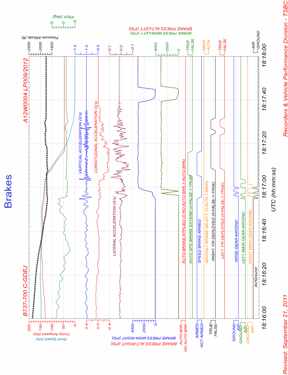 Le manque de freinage aérodynamique est plus marqué à haute vitesse […] la décélération à 120 nœuds sans inversion de poussée et sans déploiement des freins aérodynamiquesNote de bas de page 21 réduit la décélération de 60 à 70 % avec les résultats qu'on attendrait sur la distance de piste requise.