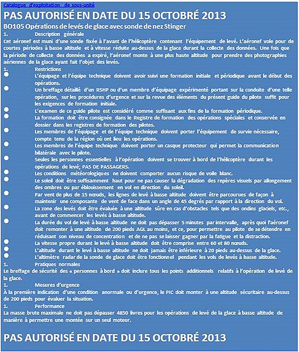 Le 5 février 2001, la DGSA a émis l'ASSB 351-0262 intitulée « Installation of JCM Aerodesign Ice Probe per STC SH01-4 », comme document d'accompagnement du STC. Cette méthode permet de faire un suivi des STC dans le cadre du programme d'entretien de la DGSA.