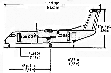 Le C-GLQO est un avion Dash 8 de la série 400 (DHC-8-402) construit par Bombardier Inc. en 2009. Il s'agit d'un biturbopropulseur moderne mesurant 107 pieds et 9 pouces de longueur (figure 1). Ses hélices mesurent 13,5 pieds de diamètre, et sa masse maximale au décollage est de 63 930 livres. L'appareil peut transporter un maximum de 78 passagers.