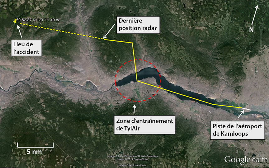Vers 10 h 16, heure avancée du Pacifique, le Cessna 172L (immatriculation C-FQTR et numéro de série 17259371) décolle de l'aéroport de Kamloops (Colombie-Britannique). L'élève-pilote est le seul occupant à bord de l'aéronef pour le vol d'entraînement local de 2 heures. Lorsque l'aéronef ne revient pas à l'heure prévue, le Centre conjoint de coordination de sauvetage de Victoria est avisé du retard de l'aéronef par TylAir Aviation Ltd., et des recherches sont lancées. Aucun signal de radiobalise de repérage d'urgence n'est détecté par le Centre canadien de contrôle des missions ni rapporté par quelqu'un d'autre. Le lendemain, l'équipe de recherche et sauvetage trouve l'épave de l'aéronef et le pilote mortellement blessé. Il n'y a pas eu d'incendie.