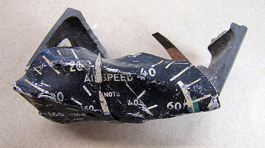 Les instruments de vol ont été détruits; cependant, des débris de l'anémomètre, de l'altimètre, du tachymètre et du compteur HobbsNote de bas de page 4, du coordonnateur de virage et de l'indicateur de position des volets ont été récupérés et analysés par le Laboratoire du BST. L'examen du cadran et de l'aiguille de l'anémomètre n'a pas révélé de marques évidentes; cependant, on a constaté que l'aiguille, en raison des déformations du cadran, était coincée dans la zone au-delà de l'indication de 200 mi/h (photo 1). La plage de vitesses d'utilisation normale s'étend de 59 à 140 mi/h (vitesse de manœuvre). La plage de précaution s'étend de 140 à 174 mph (vitesse à ne pas dépasser et ligne rouge). Le trait de graduation de vitesse la plus élevée de l'indicateur est 210 mi/h. Le cadran du tachymètre présentait des marques témoins indiquant environ 2550 tr/min. Le régime maximal du moteur à 5000 pieds asl est de 2600 tr/min. Il n'a pas été possible de déterminer la position de la manette des gaz au moment de l'accident.