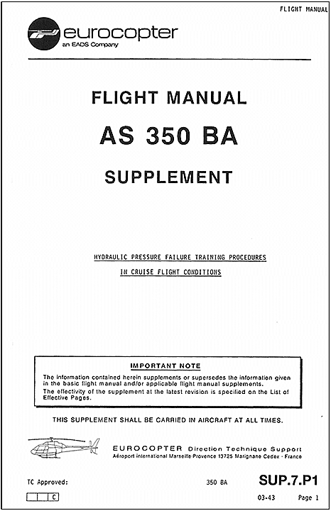 Source : Eurocopter, Flight Manual AS 350 BA, Sup.7 (en anglais seulement)